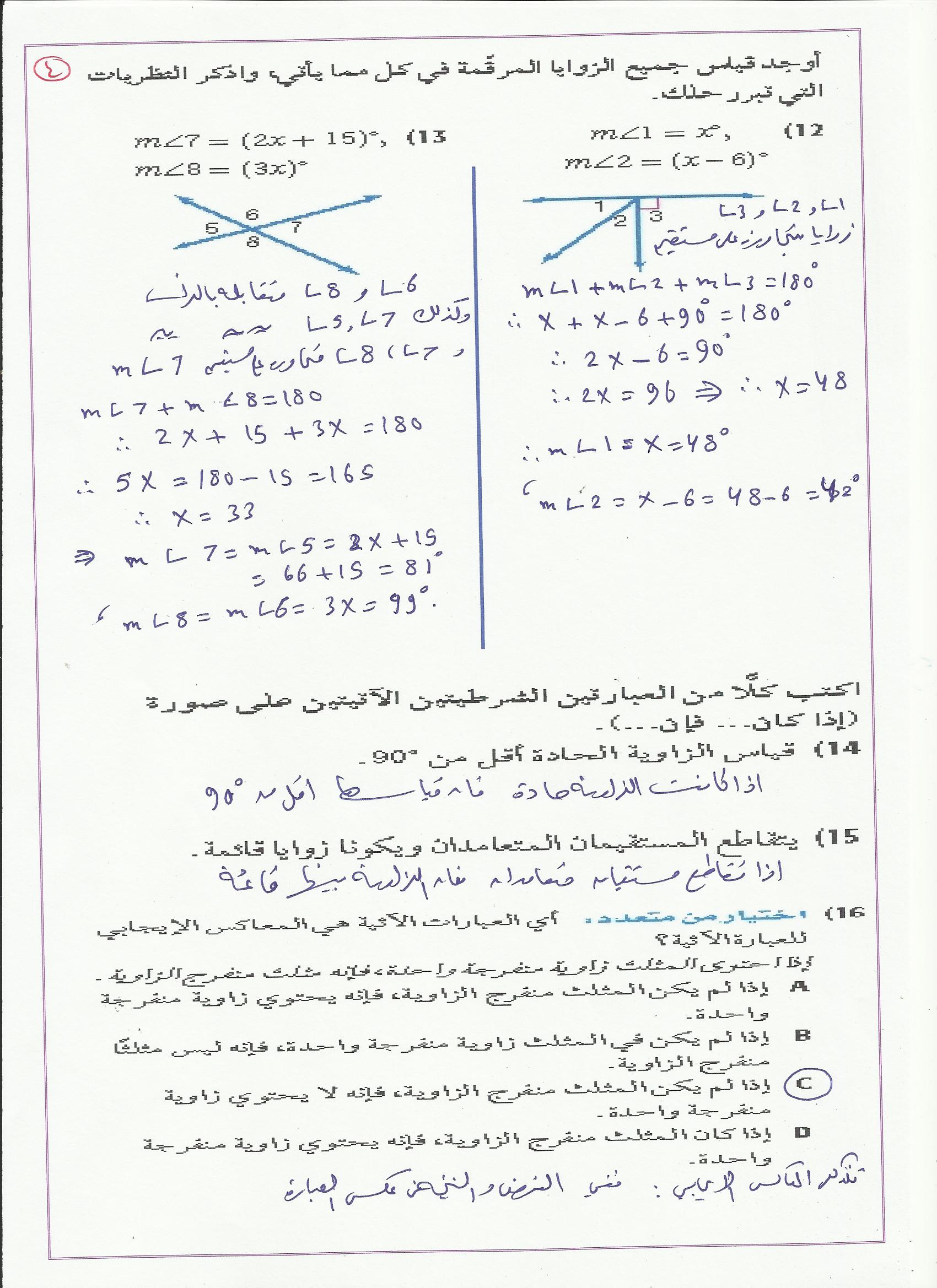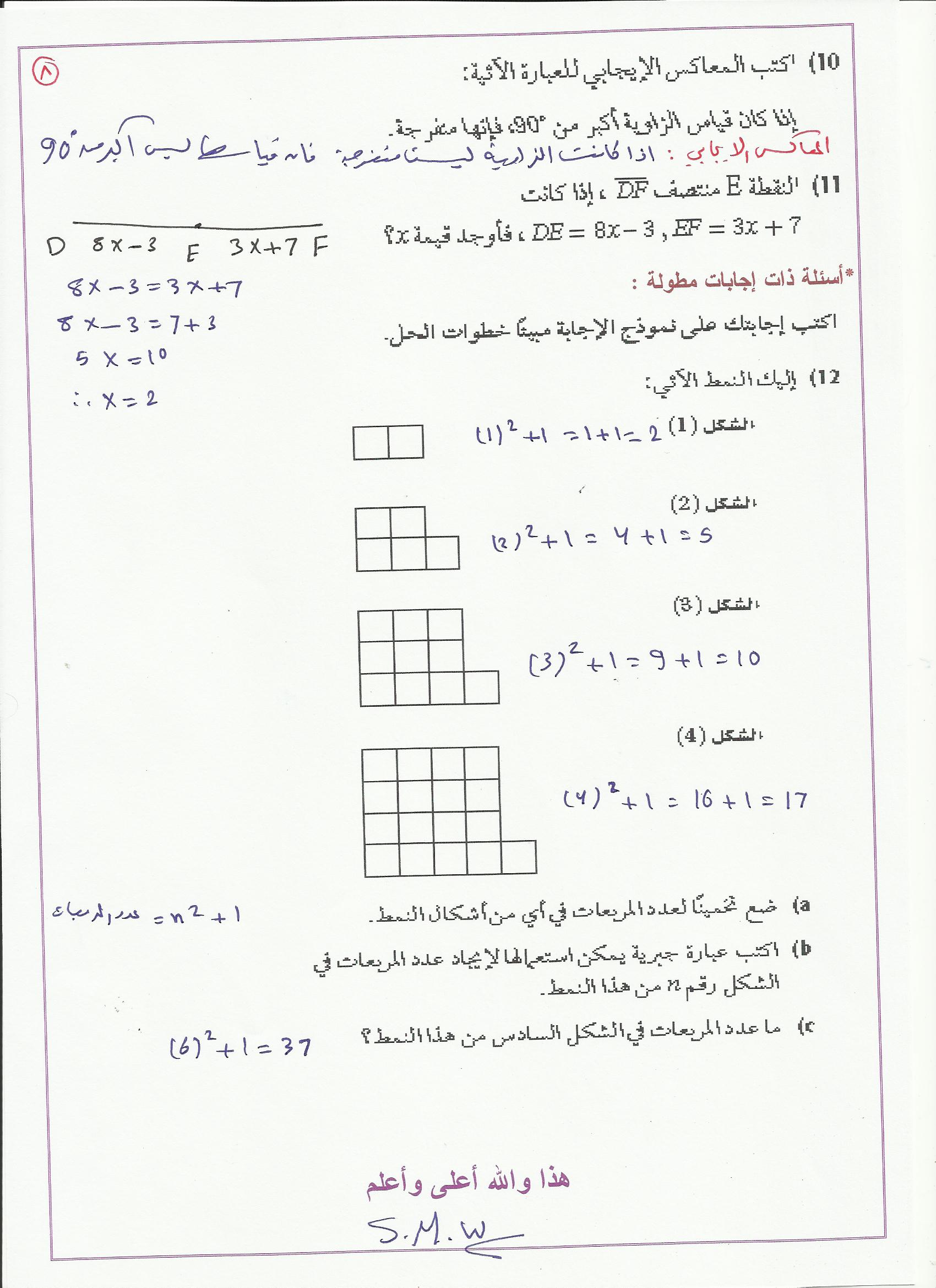 حل اختبار نهاية الفصل الأول رياضيات اول ثانوي الطبعة المعدلة ف1 1436-1437