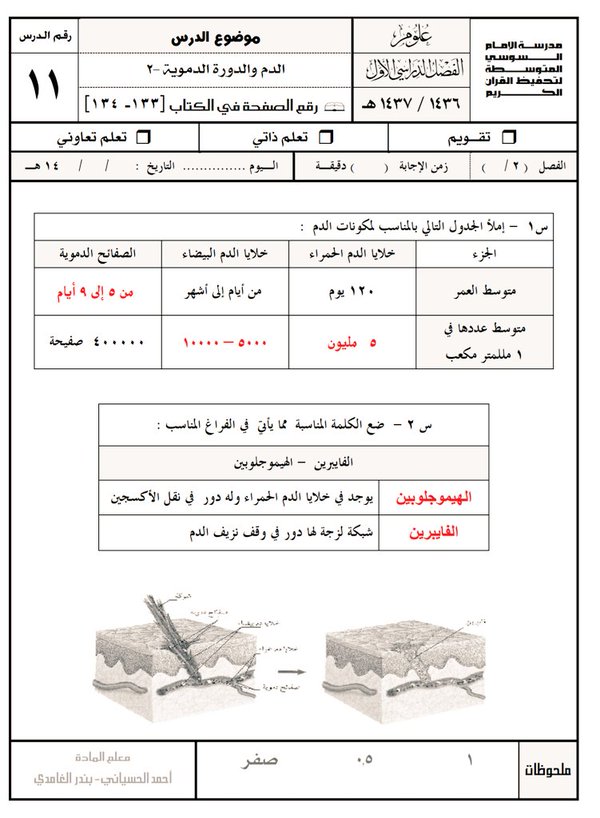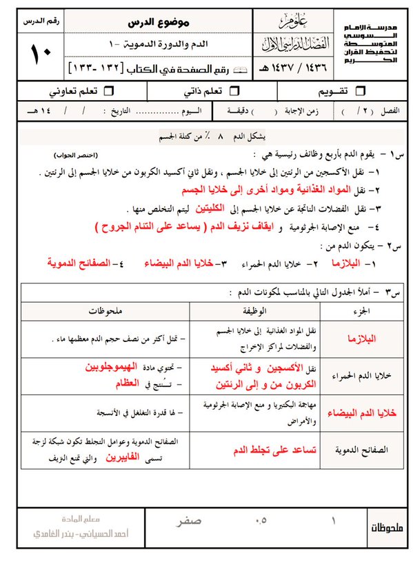 حل درس من 10-13 مادة علوم للصف الثالث المتوسط ف1 1436-1437