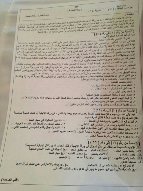 نماذج من اسئلة وزارة العدل لوظيفة كاتب ضبط