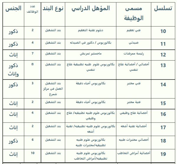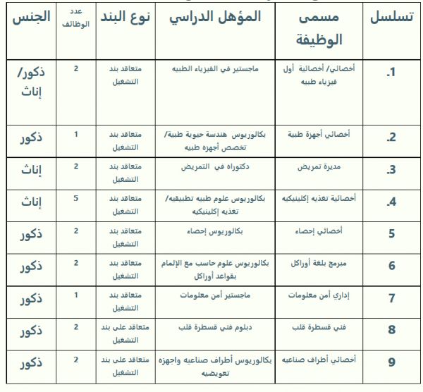 تعلن إدارة مستشفيات القوات المسلحة بمنطقة الطائف عن حاجتها لشغل الوظائف الموضحة أدناه وفق