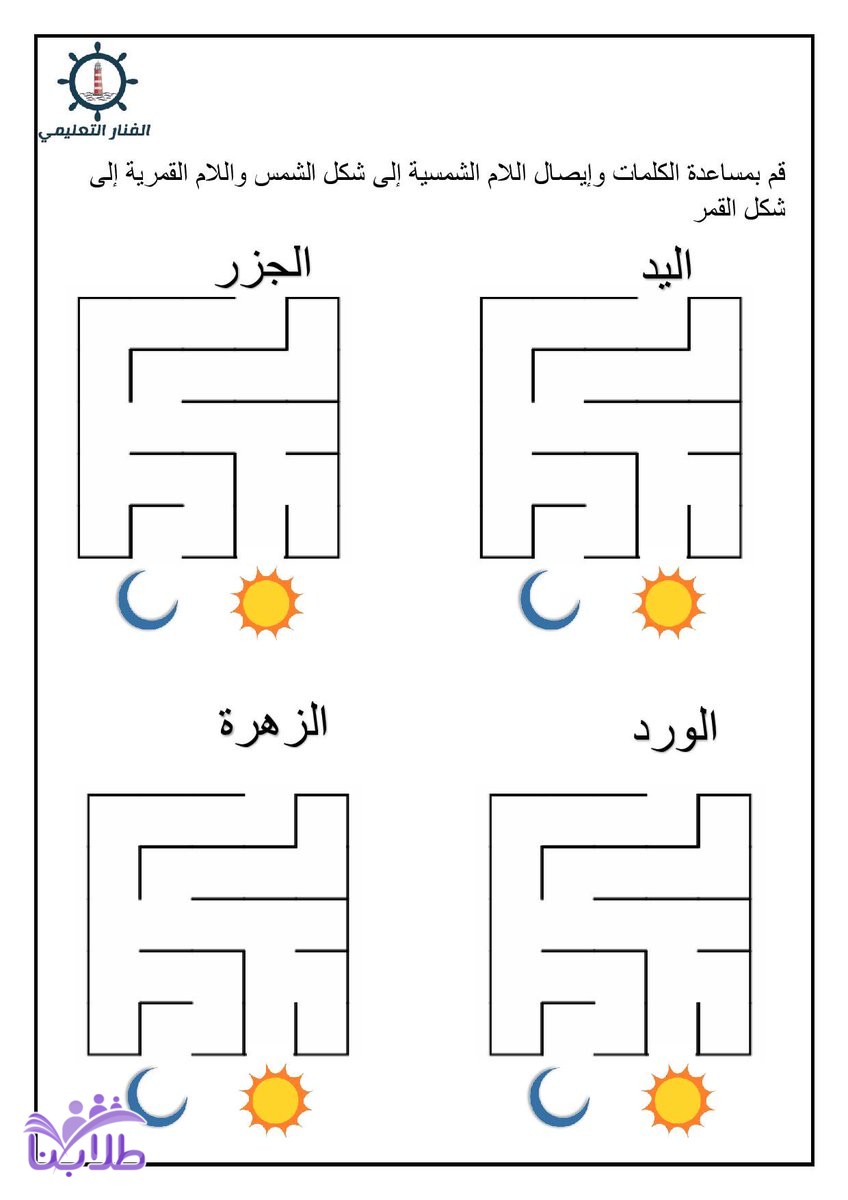تحميل اوراق عمل اللام الشمسية واللام القمرية أول ابتدائي