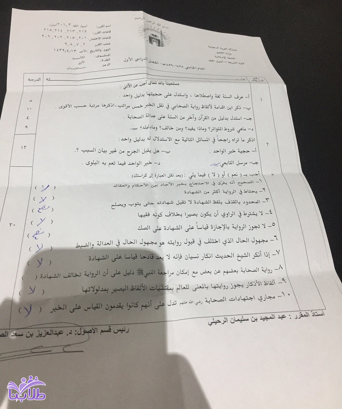 اختبار اصول الفقه 3 أصل 201 ف1 1439