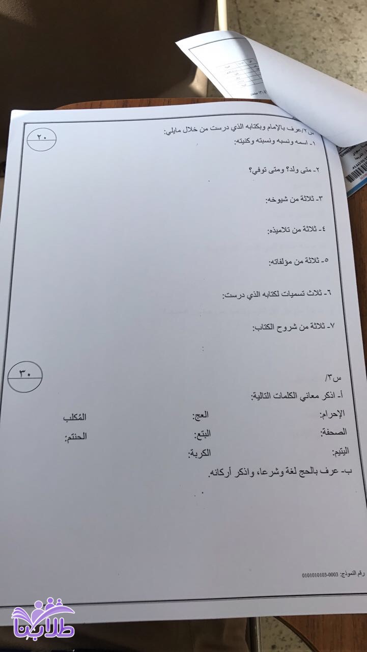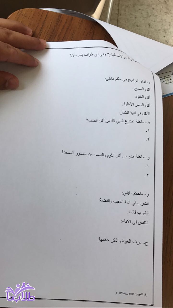 اختبار الحديث 4 للمستوى الخامس ف1 الجامعة الإسلامية لعام 1439 هـ