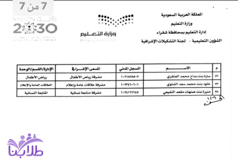 وأكّدت الإدارة أن القرار يشمل مَن جدّد لهم العمل في الإشراف التربوي، ومَن تمّ تكليفهم من المعلمين والمعلمات ، كما نصّ القرار على تكليف المشرف التربوي أو المشرفة التربوية معلمين في المدارس في حال وجود عجز في أعداد المعلمين لا يمكن تسديده من الميدان المدرسي.
