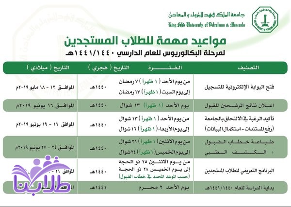 أعلنت جامعة الملك فهد للبترول والمعادن عن فتح باب تقديم طلبات الالتحاق بها الكترونياً