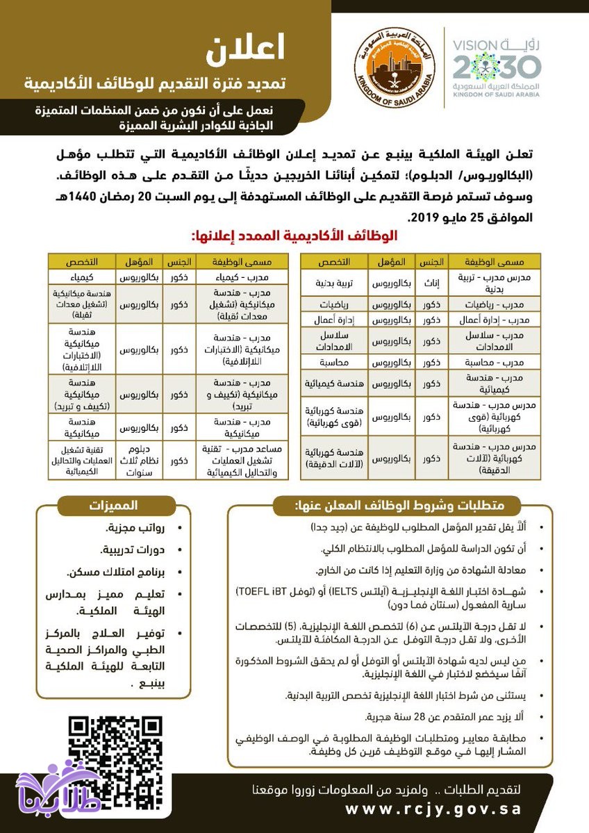 وظائف تدريبية وتعليمية للجنسين بالهيئة الملكية بينبع