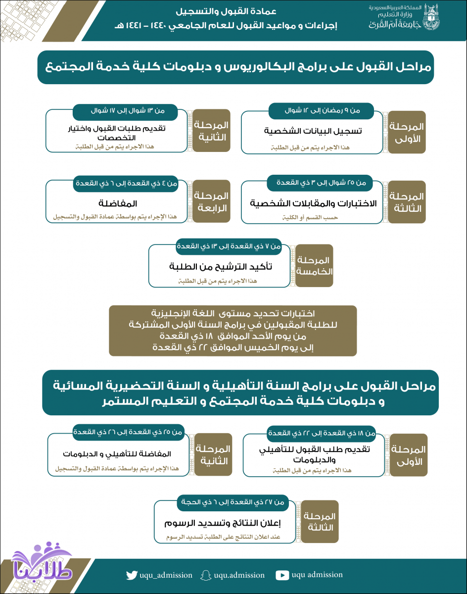 الاعلان عن مواعيد ومراحل القبول بجامعة أم القرى لعام 1440-1441هـ