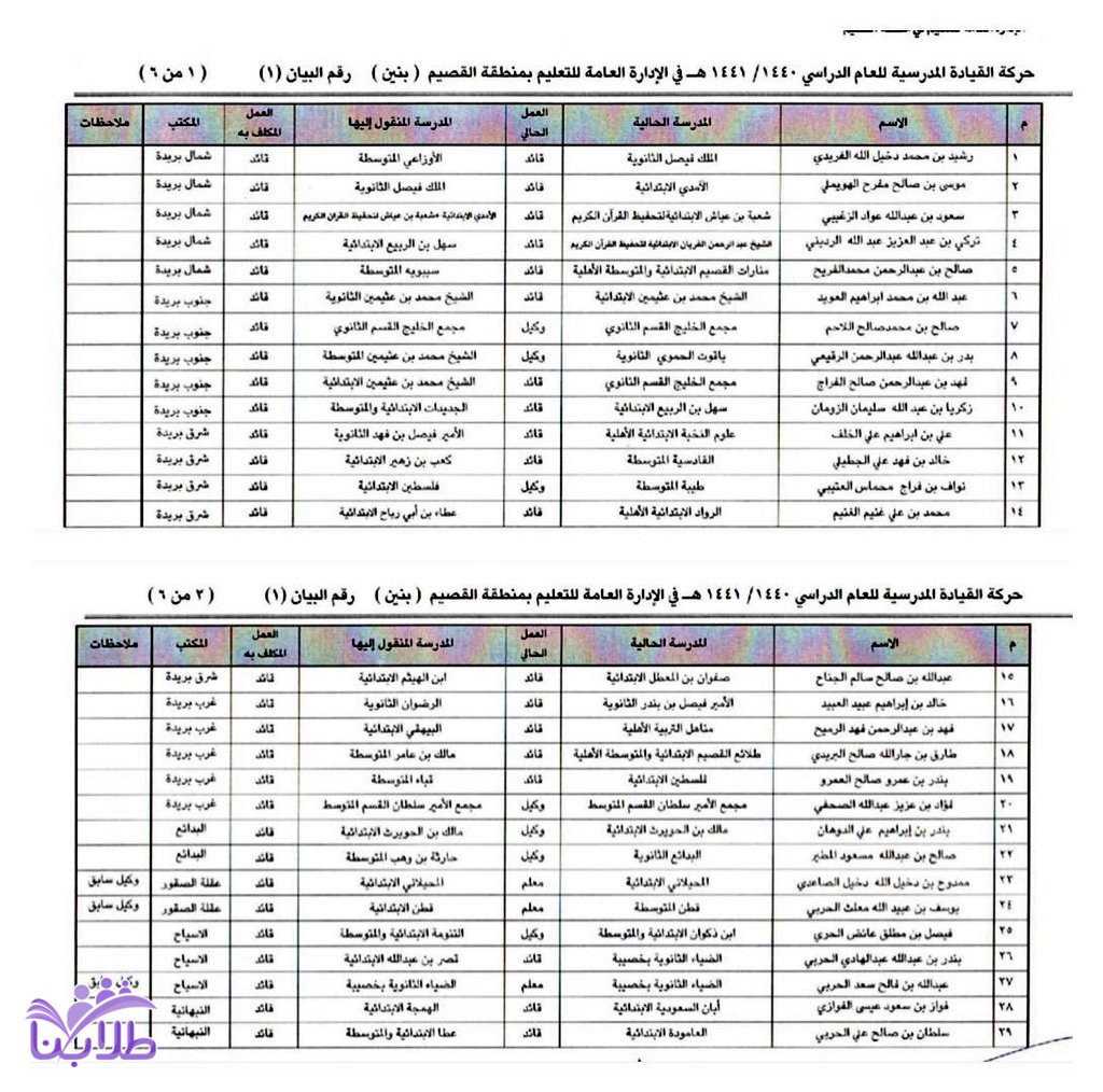 اعتمد مدير عام تعليم منطقة القصيم، حركة القيادة المدرسية (بنين) لعام 1440-1441هـ.