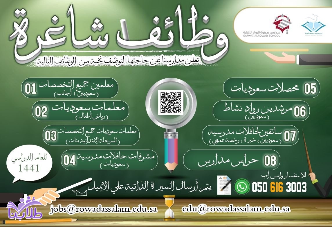 وظائف إدارية وتعليمية للجنسين بمدارس صفوة الرواد الأهلية ومدارس رواد السلام الأهلية في الدمام