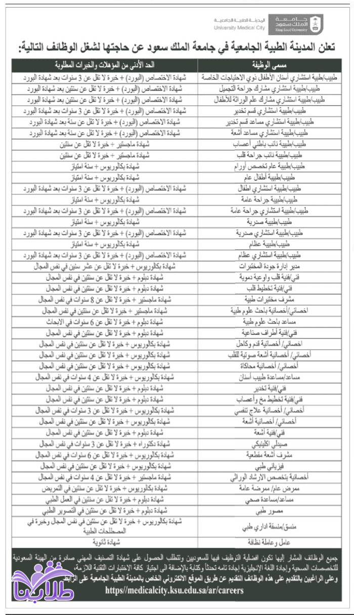 وظائف للجنسين في جامعة الملك سعود ممثلة بالمدينة الطبية الجامعية