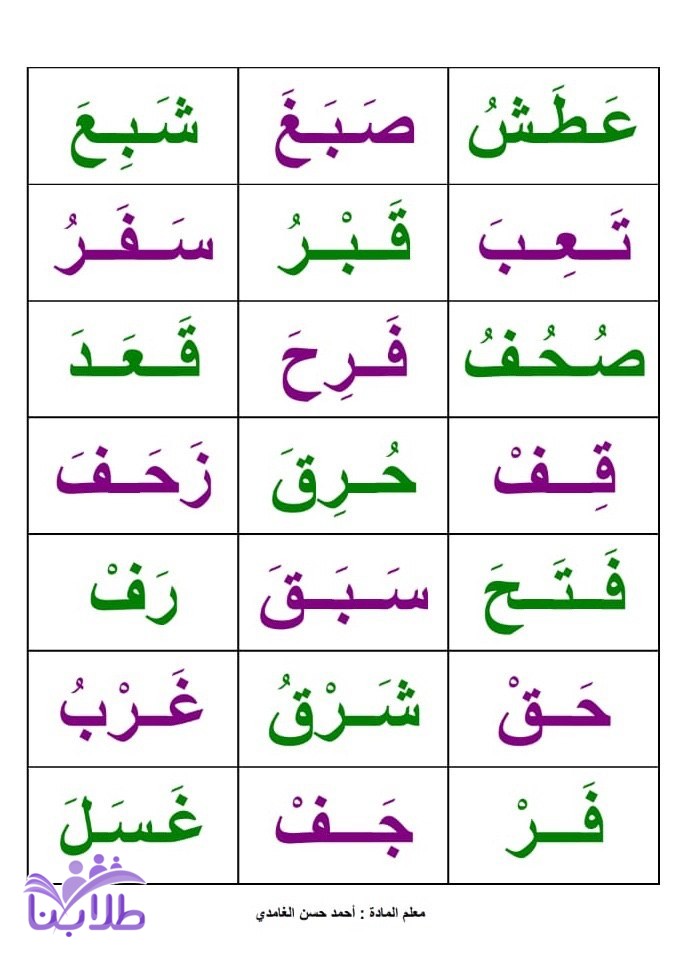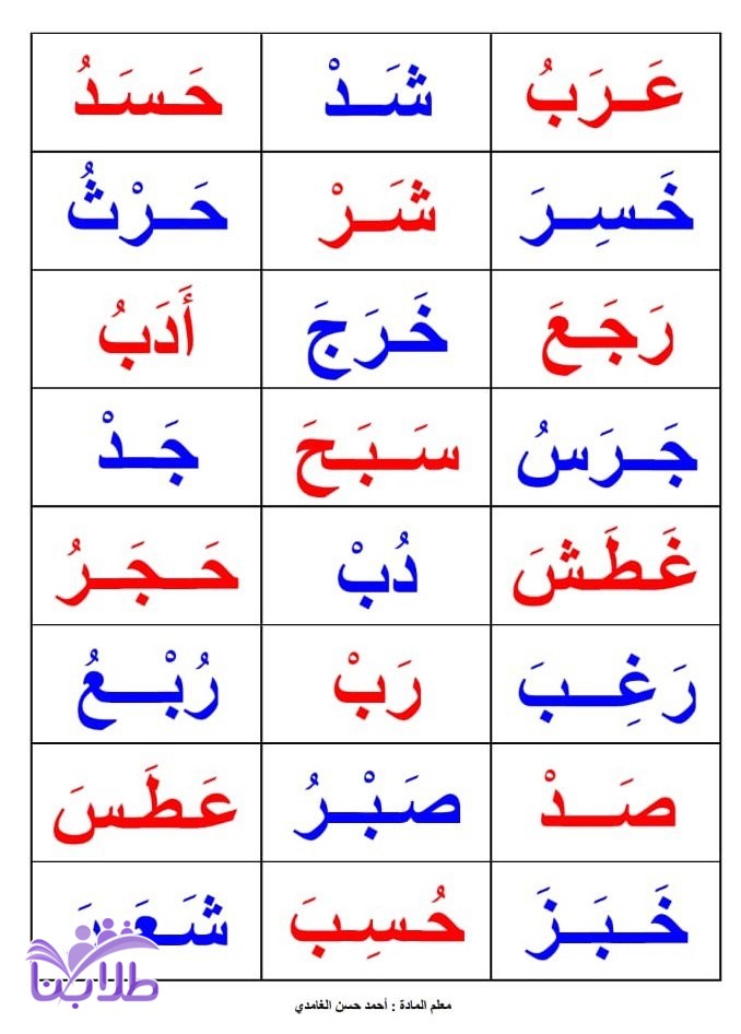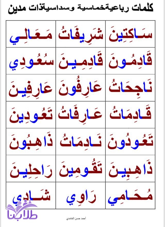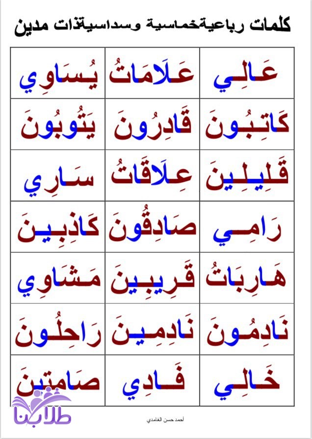 حروف وكلمات ثنائية وثلاثية ورباعية وخماسية ومد ومدين والحرف المشدد والحركات2