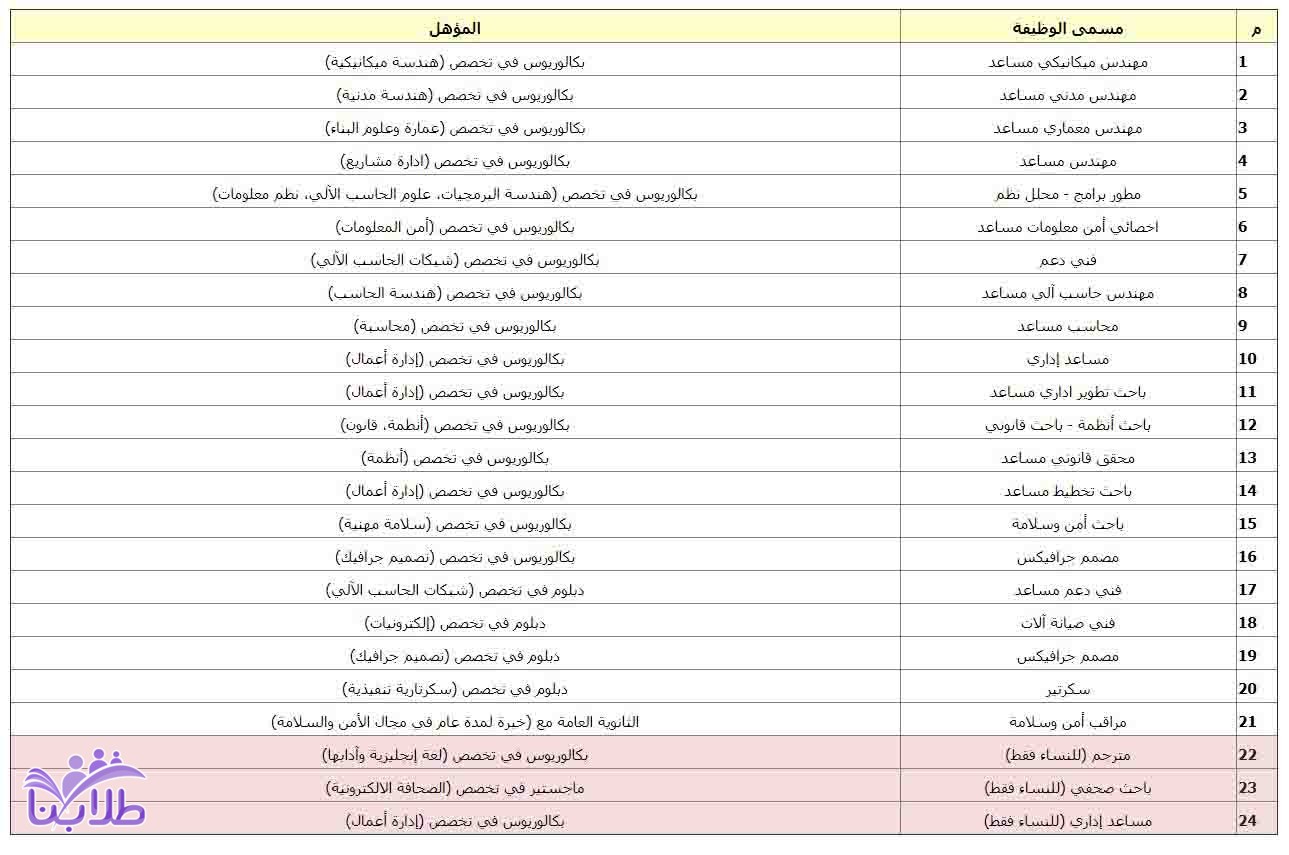 1- التأكد من مطابقة التخصص في المؤهل العلمي مع التخصص المطلوب.