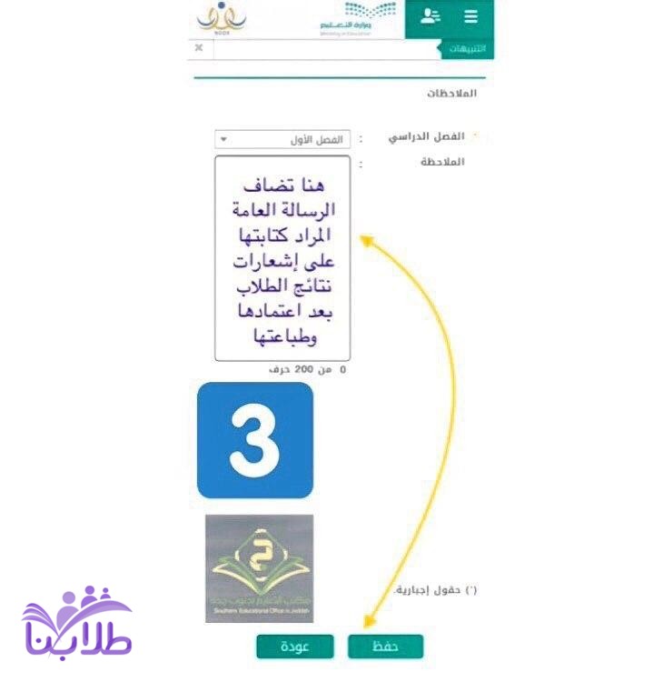 طريقة كتابة وإضافة رسالة عامة على إشعارات نتائج الطلاب في نظام نور⁩