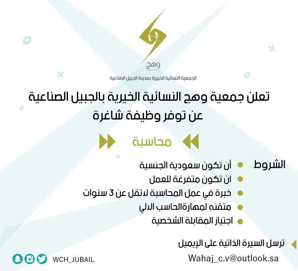 وظيفة نسائية في جمعية وهج النسائية الخيرية بالجبيل