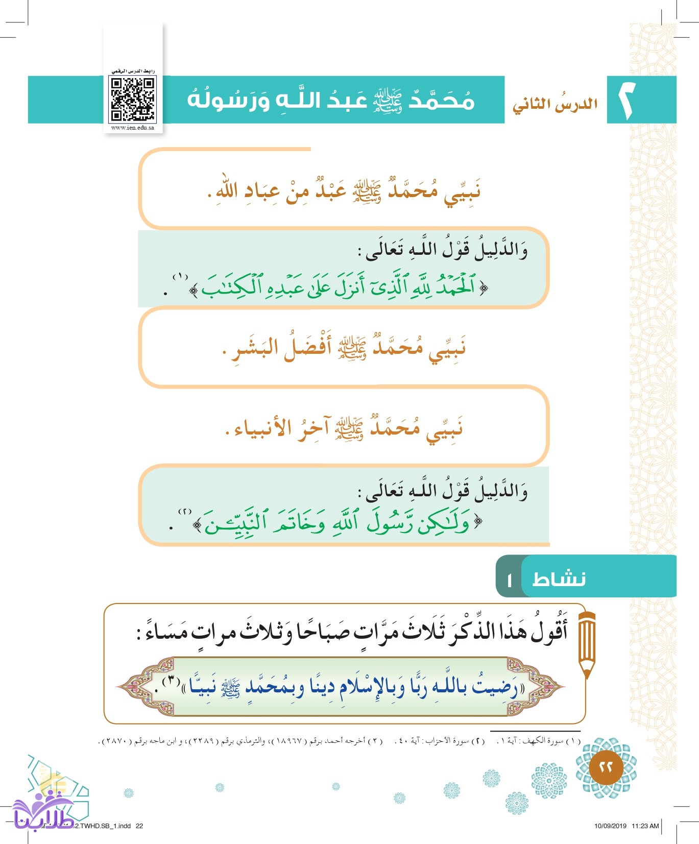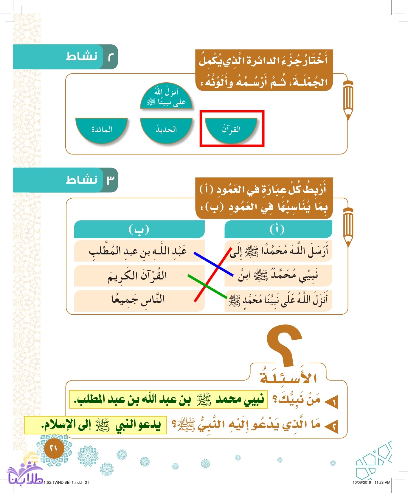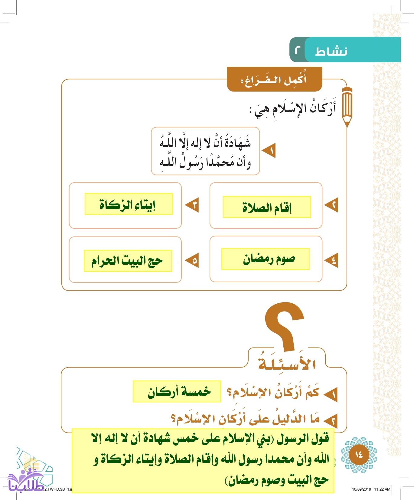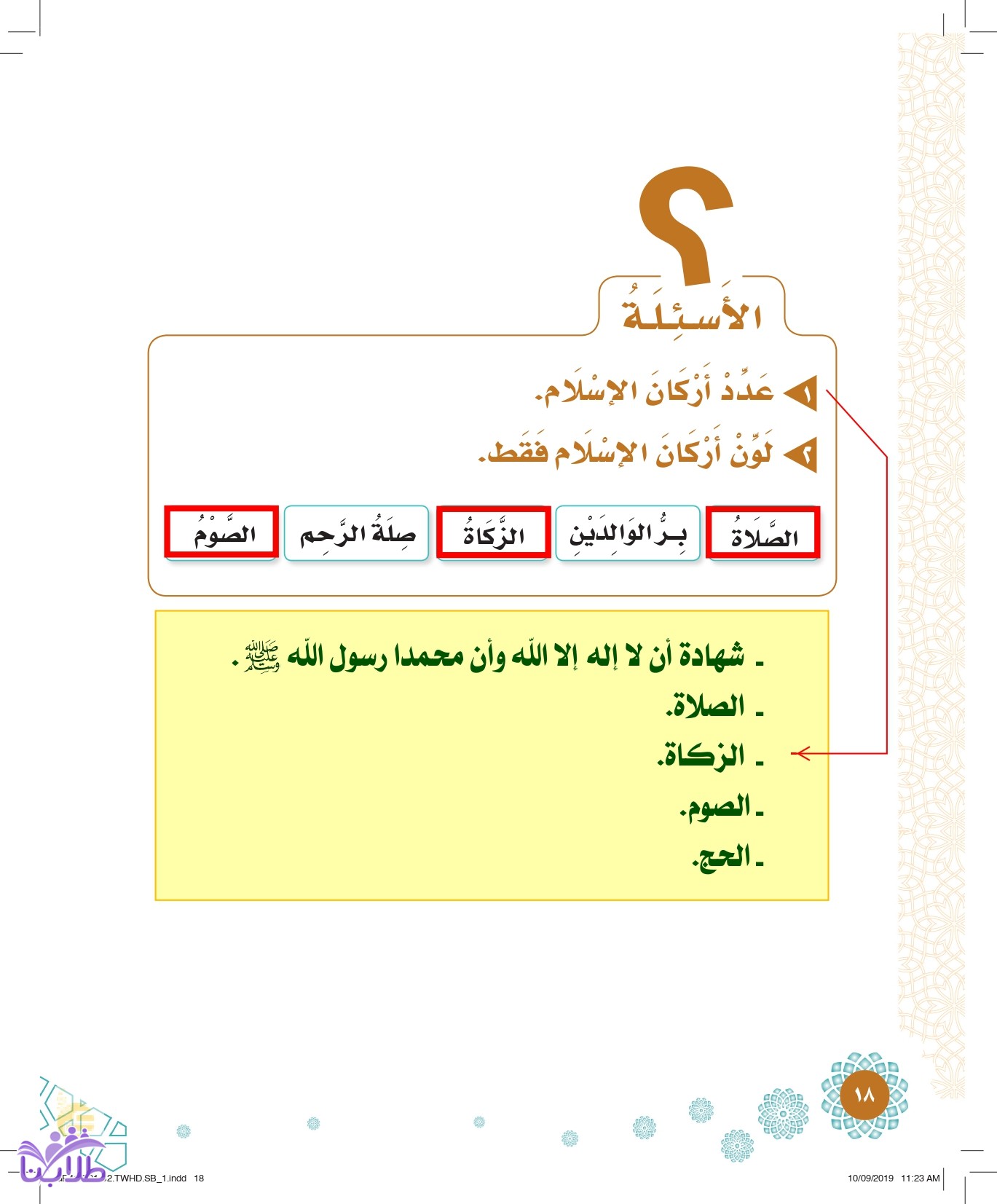 حل كتاب التوحيد الصف الأول ابتدائي الفصل الدراسي الثاني