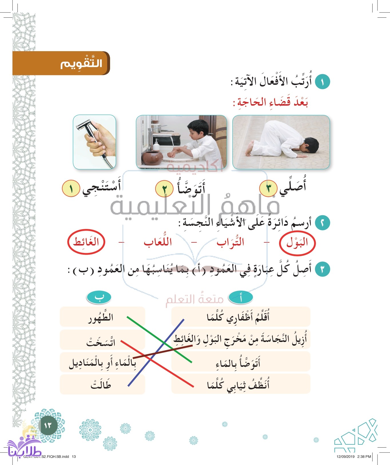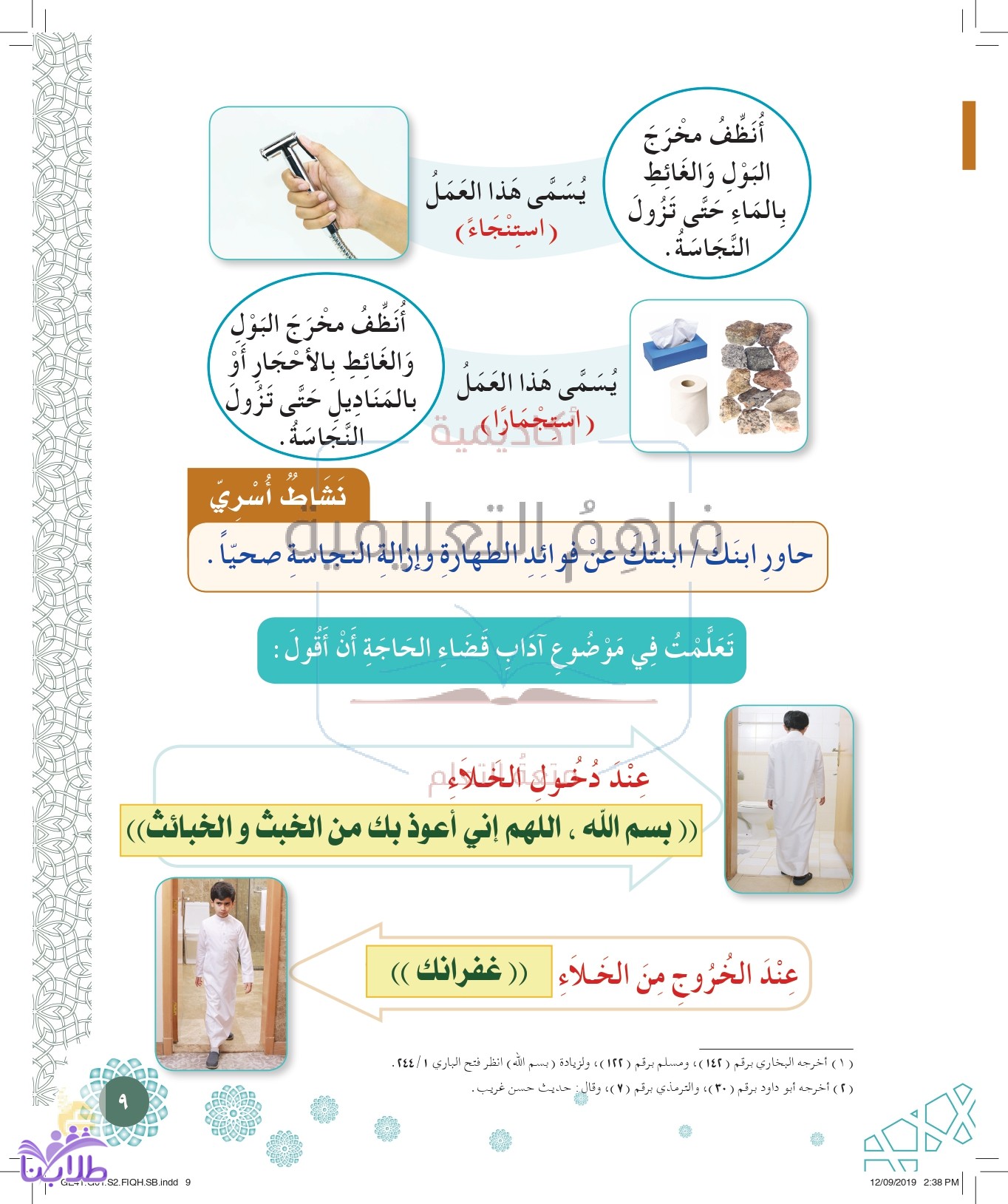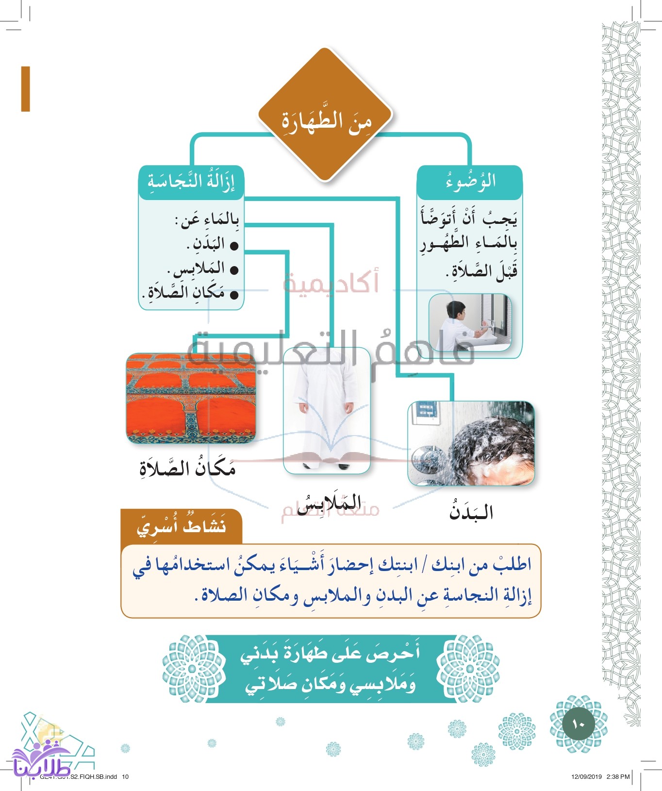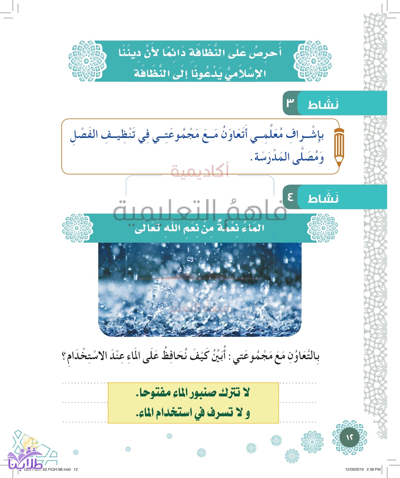 حل فقه وسلوك للصف أول ابتدائي الوحدة السابعة: الطهارة والنظافة الفصل الثاني