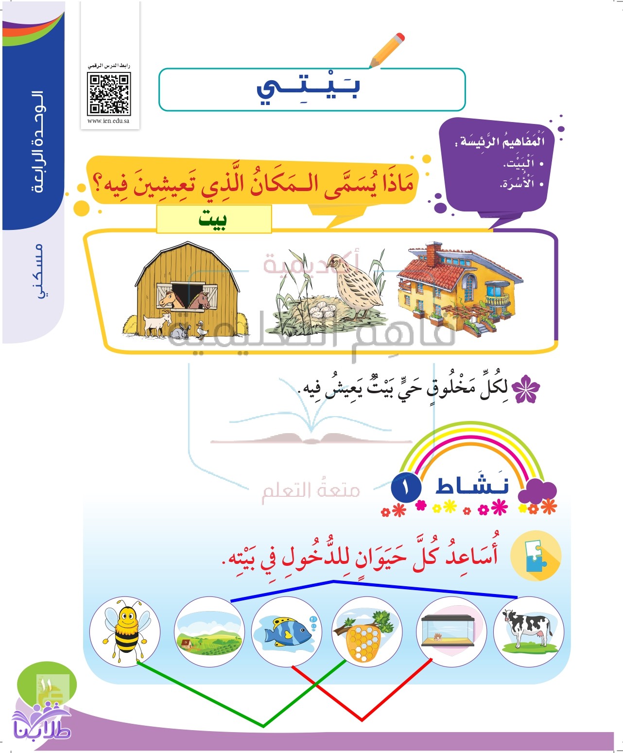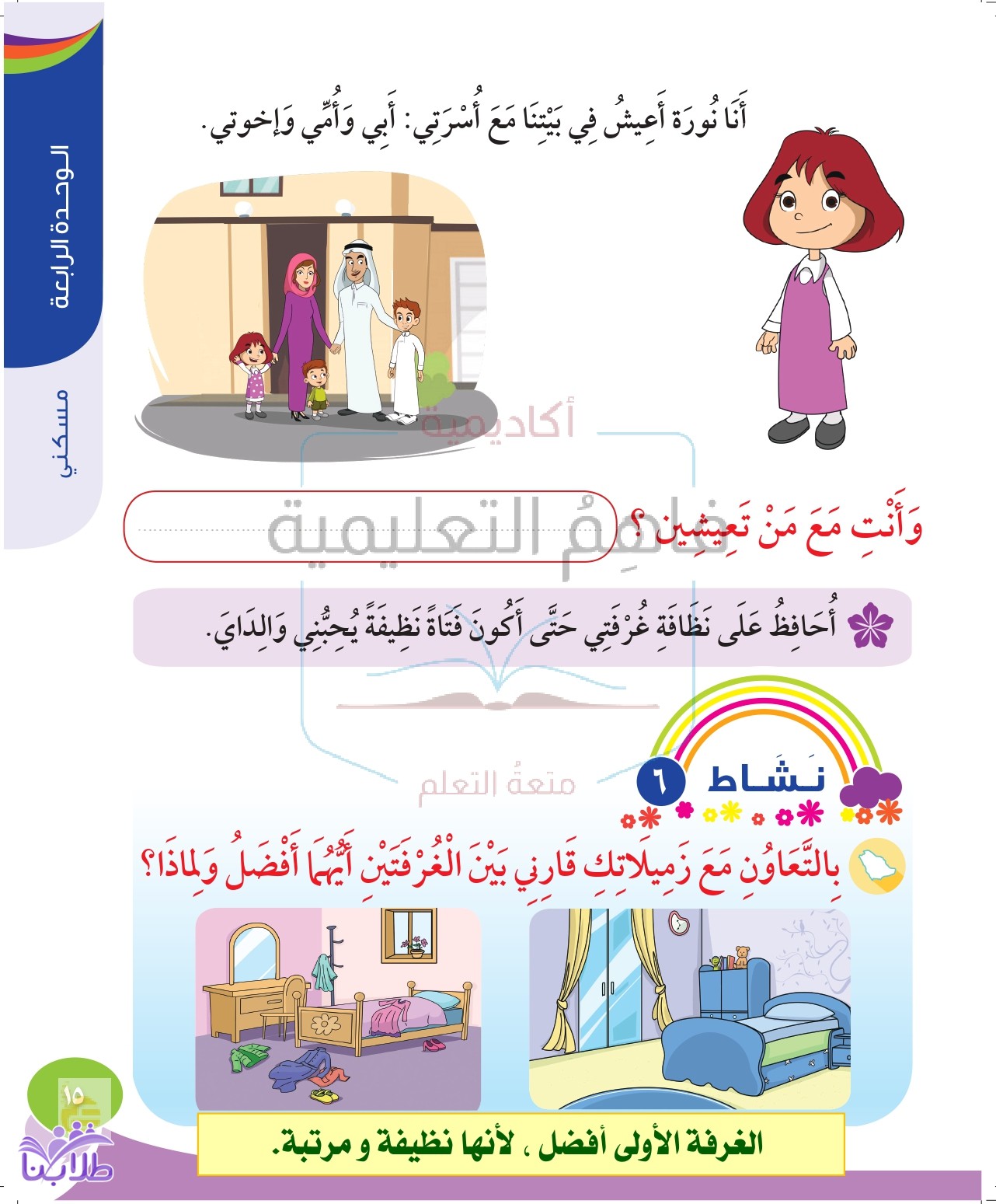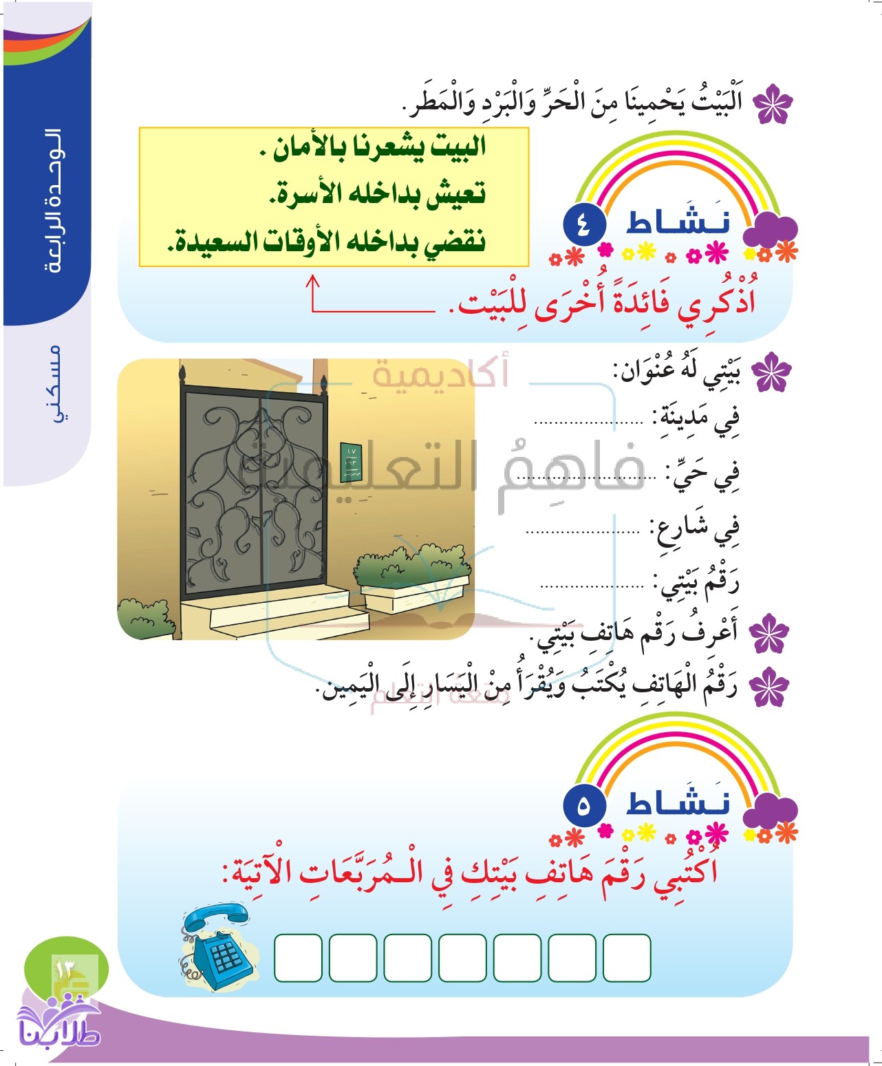 حل التربية الاسرية الصف الأول الوحدة الرابعة مسكني