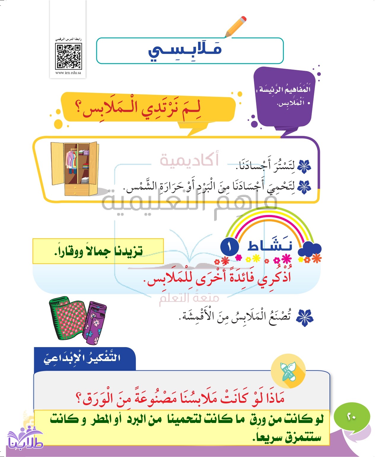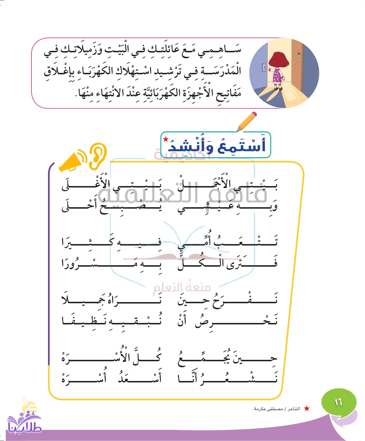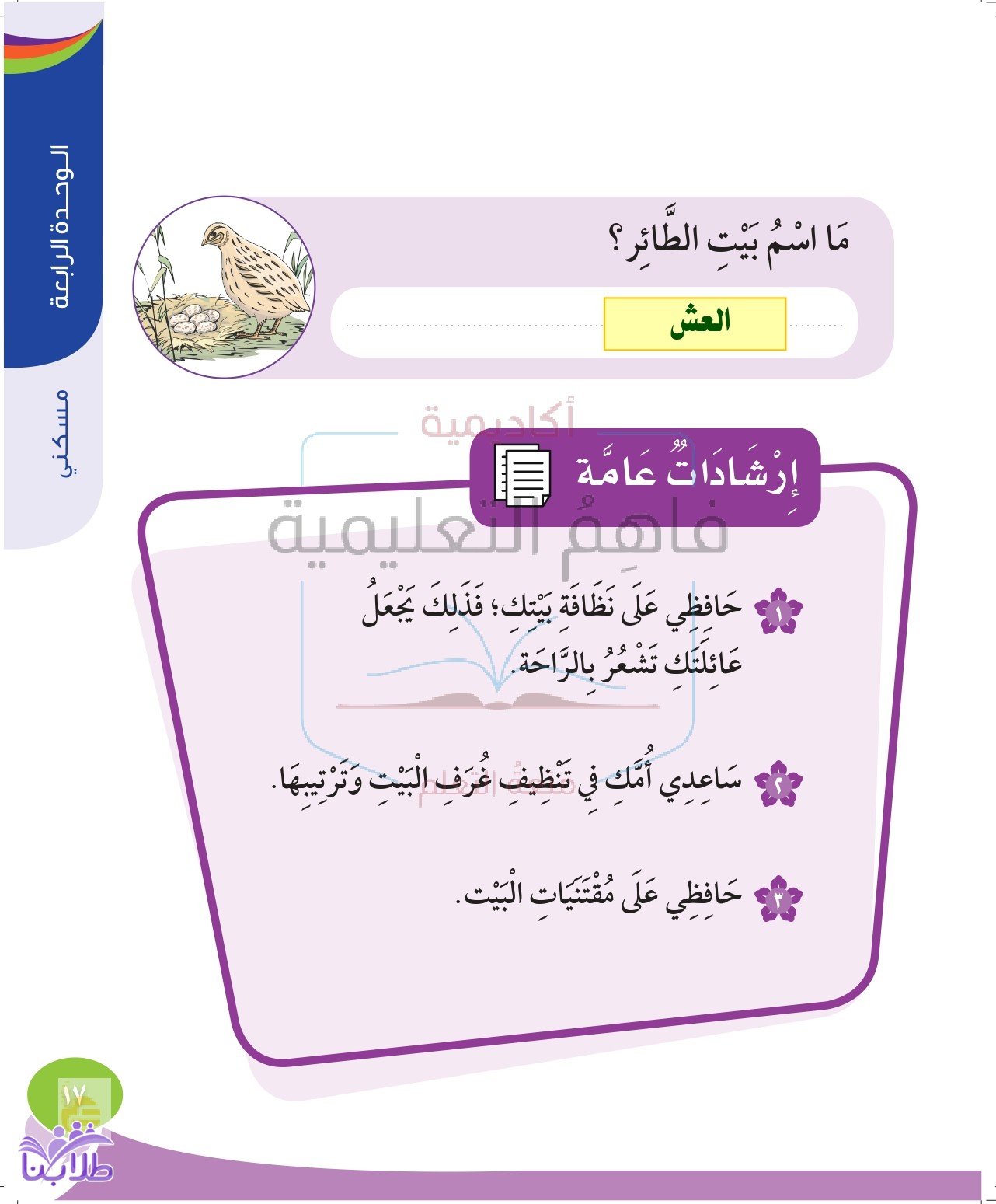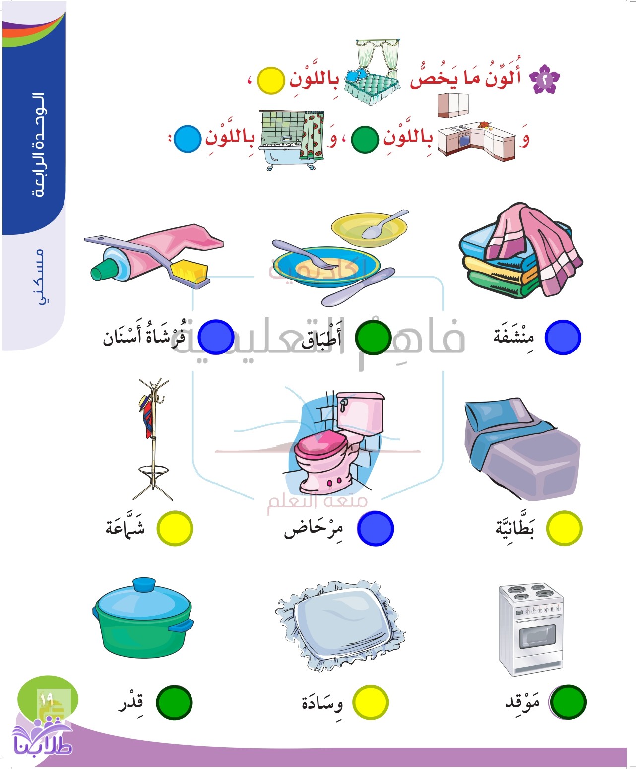 حل التربية الاسرية الصف الأول الوحدة الرابعة مسكني
