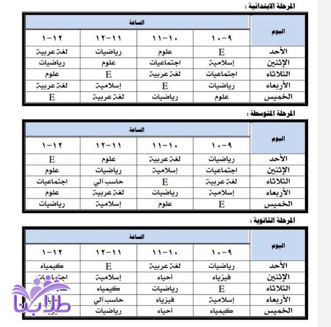 جدول الحصص اليومية لطلاب والطالبات في قناة عين التعليمية لجميع المراحل
