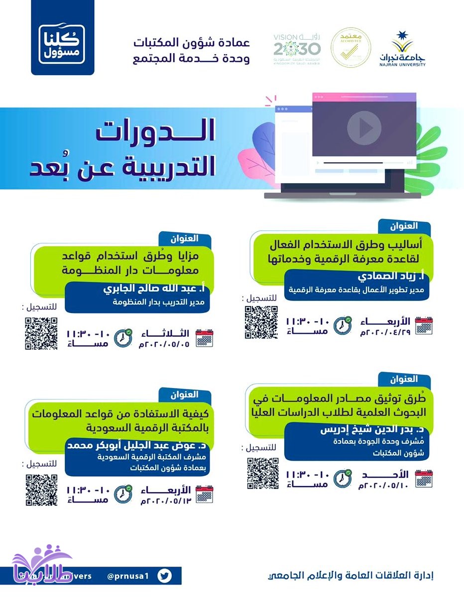 دورات تدريبية عن بعد بجامعة نجران