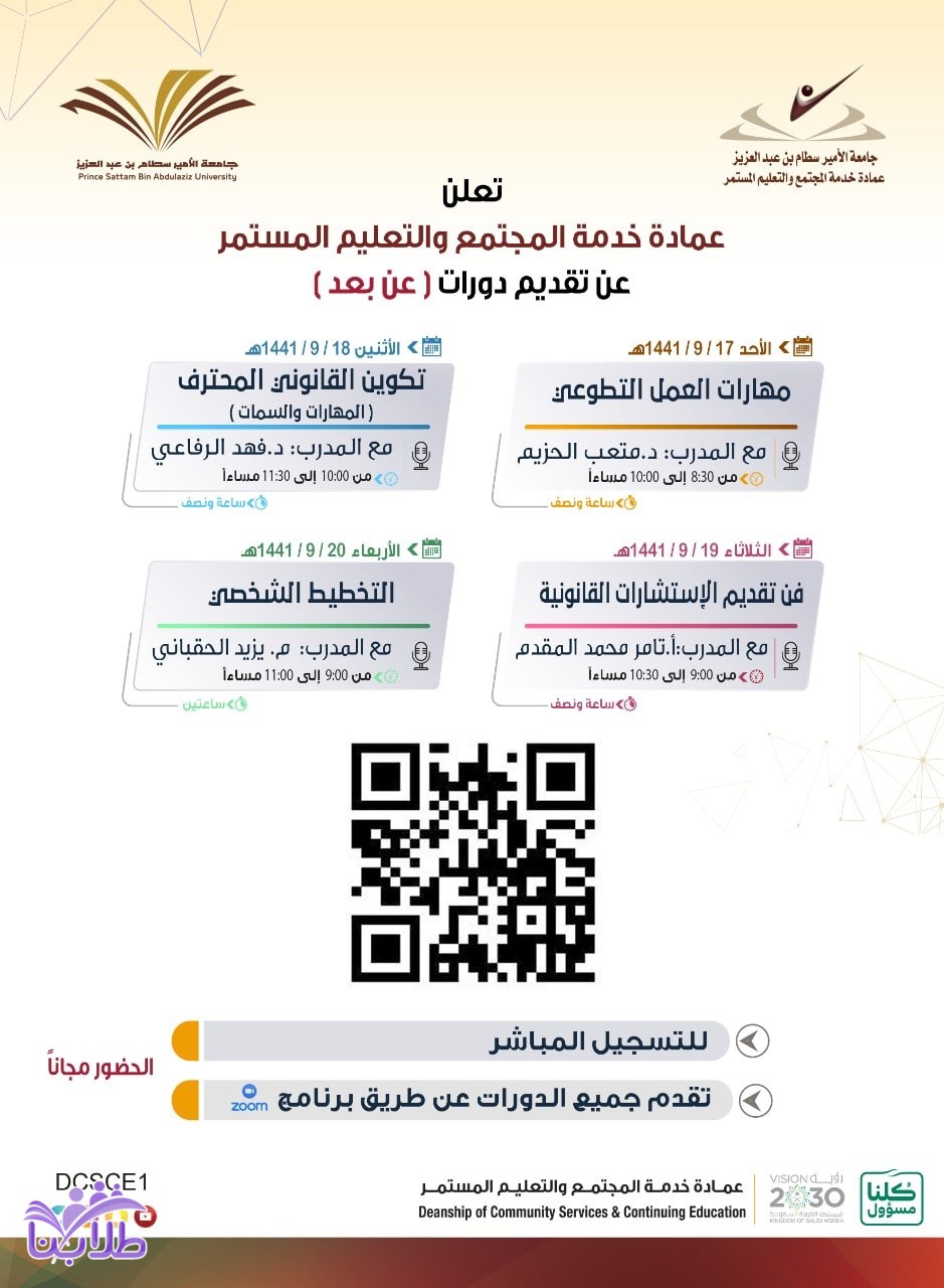أعلنت جامعة الأمير سطام عن توفر دورات تدريبية عن بعد للجنسين عن طريق برنامج Zoom