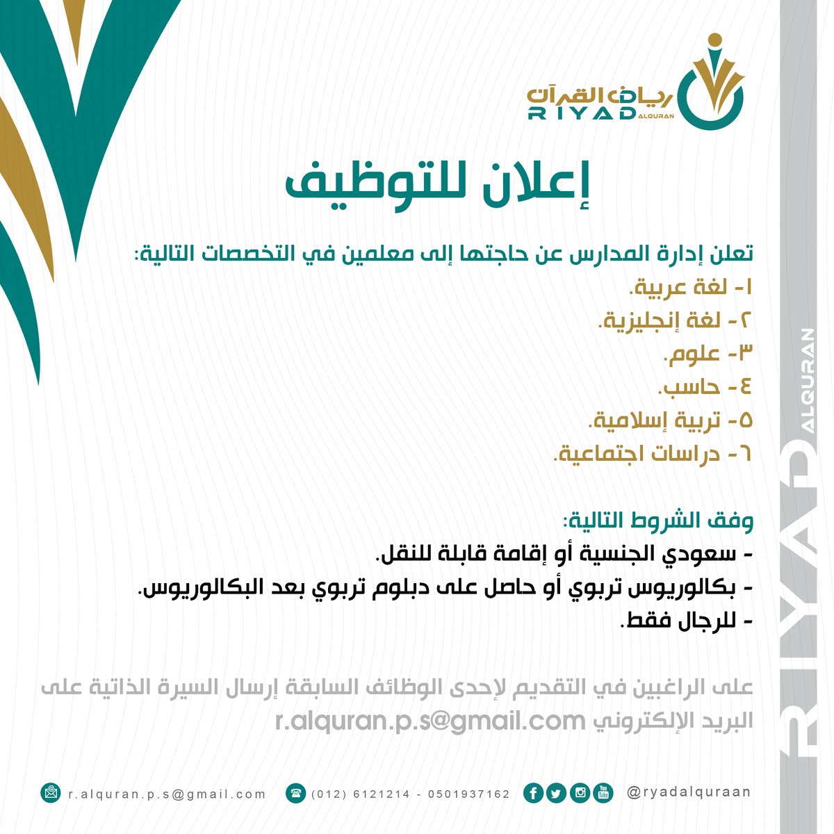 توفر مدارس رياض القرآن الأهلية وظائف تعليمية
