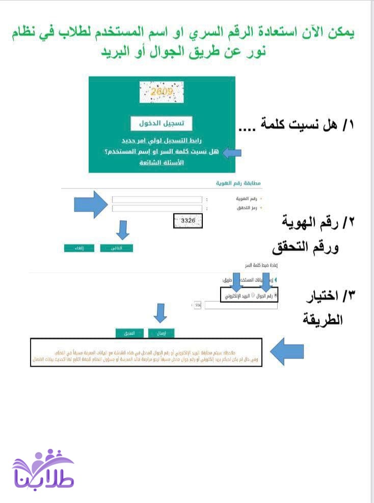 خطوات استعادة كلمة المرور لمن فقدها في نظام نور