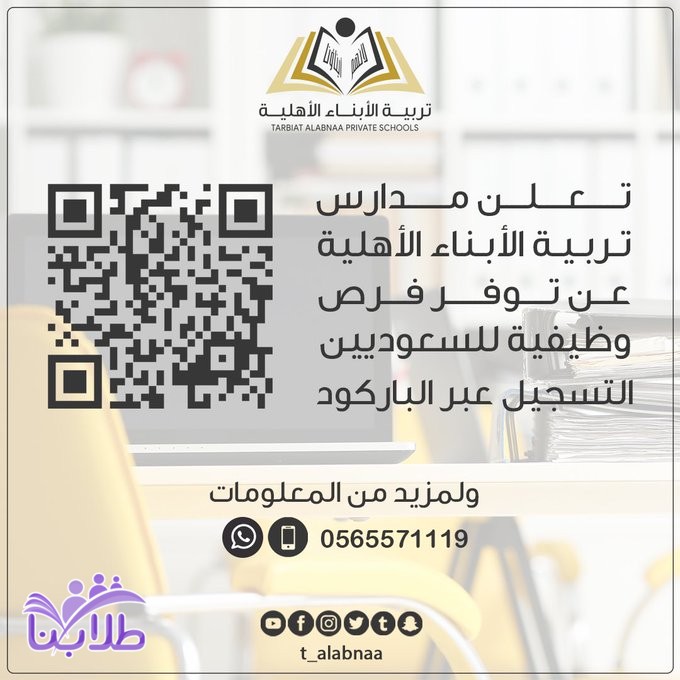 وظائف تعليمية لجميع المراحل بمدارس تربية الأبناء الأهلية بالطائف