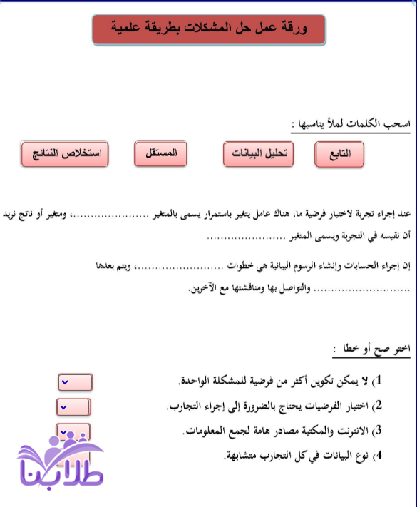ورقة عمل تفاعلية درس المشكلات بطريقة علمية ثاني متوسط