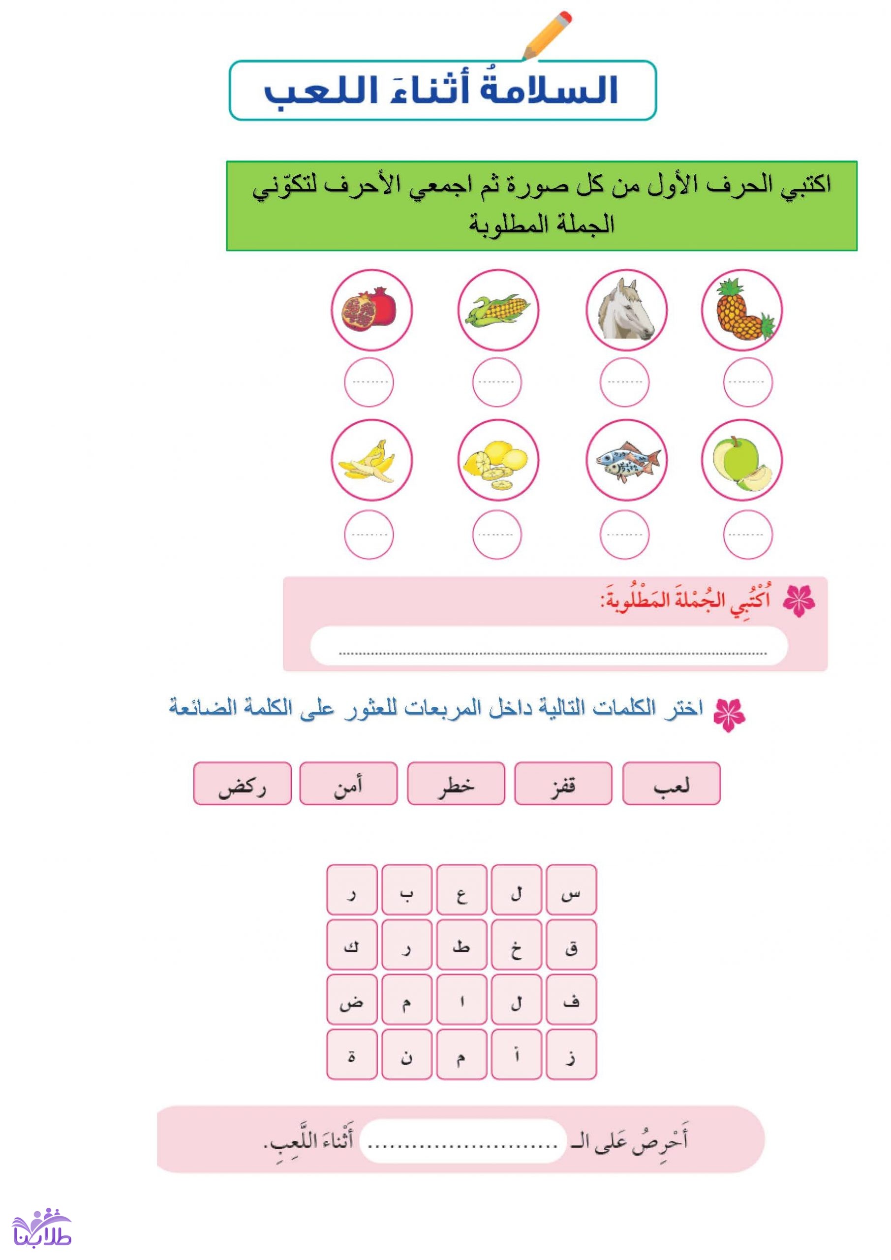 أوراق عمل درس السلامة أثناء اللعب اول ابتدائي ف3