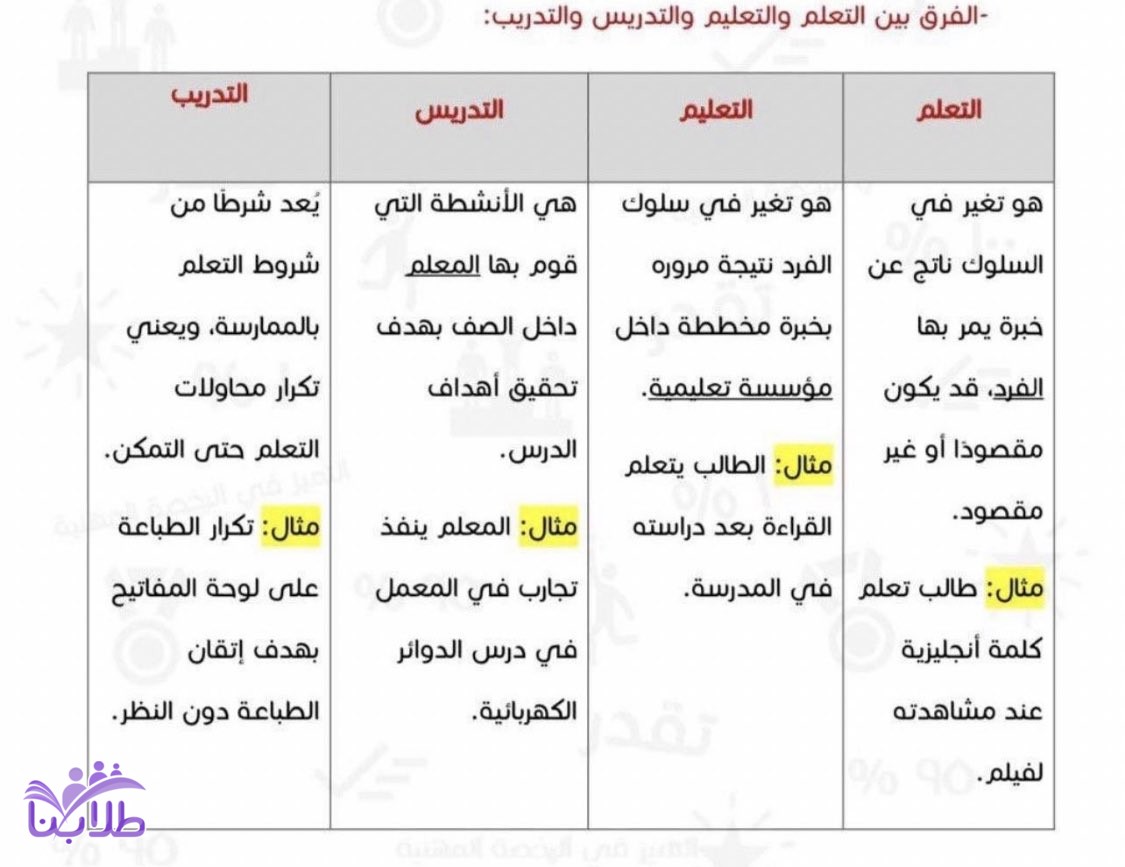 الفرق بين التعلم والتعليم والتدريس والتدريب