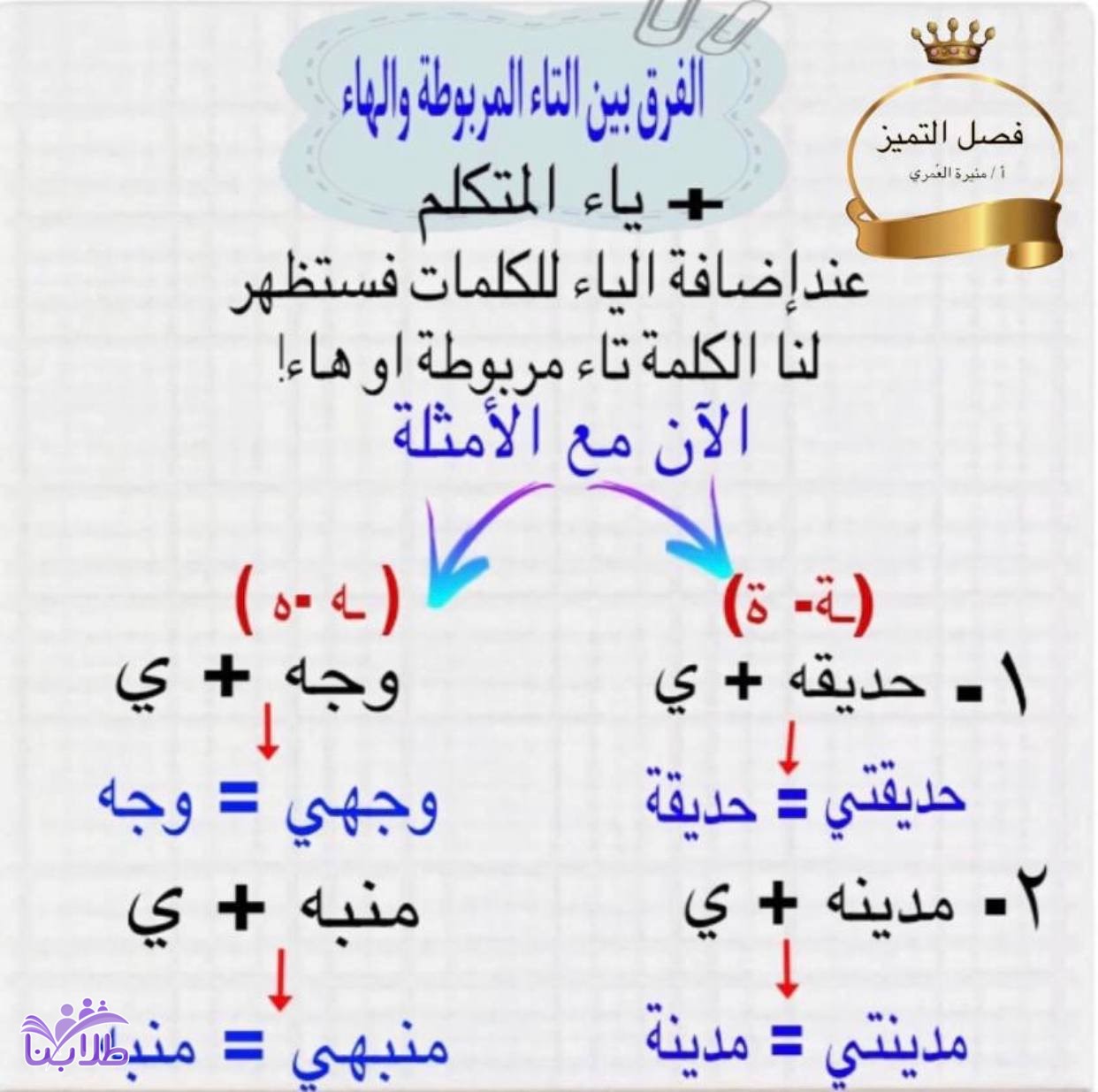 شرح الفرق بين التاء المربوطة والهاء + ياء المتكلم مادة لغتي الصف الأول ابتدائي الفصل الدراسي الثاني، تعتبر البطاقات التعليمية من ضمن الوسائل المستخدمة حديثا في تبسيط العملية التعليمية من قبل المدرسين، وامام ذلك يتطلب من المدرس العمل بكل جهده على استخدامها.